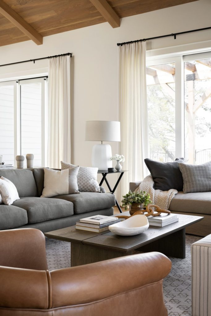 En este salón, la firma Leclair Decor otorga el acento en negro a través de pequeños elementos cómo son el cojín, los sillones o los libros, además de la carpintería de la ventana.